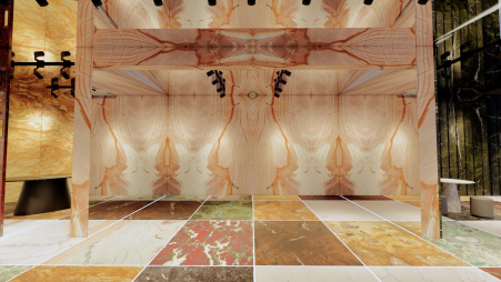 O estande conta ainda com um corredor formado por 12 chapas de grandes formatos, com cerca de 3 metros por 1,26 metro, criando um percurso imersivo com materiais como Rosso Fiorentino, Via Áppia, Vitória Régia, Malta, Oslo, Oak Bamboo, Yellow Bamboo, Emerald Green, Xingu, Moulin Rouge, Frangelico e Bossa Nova.