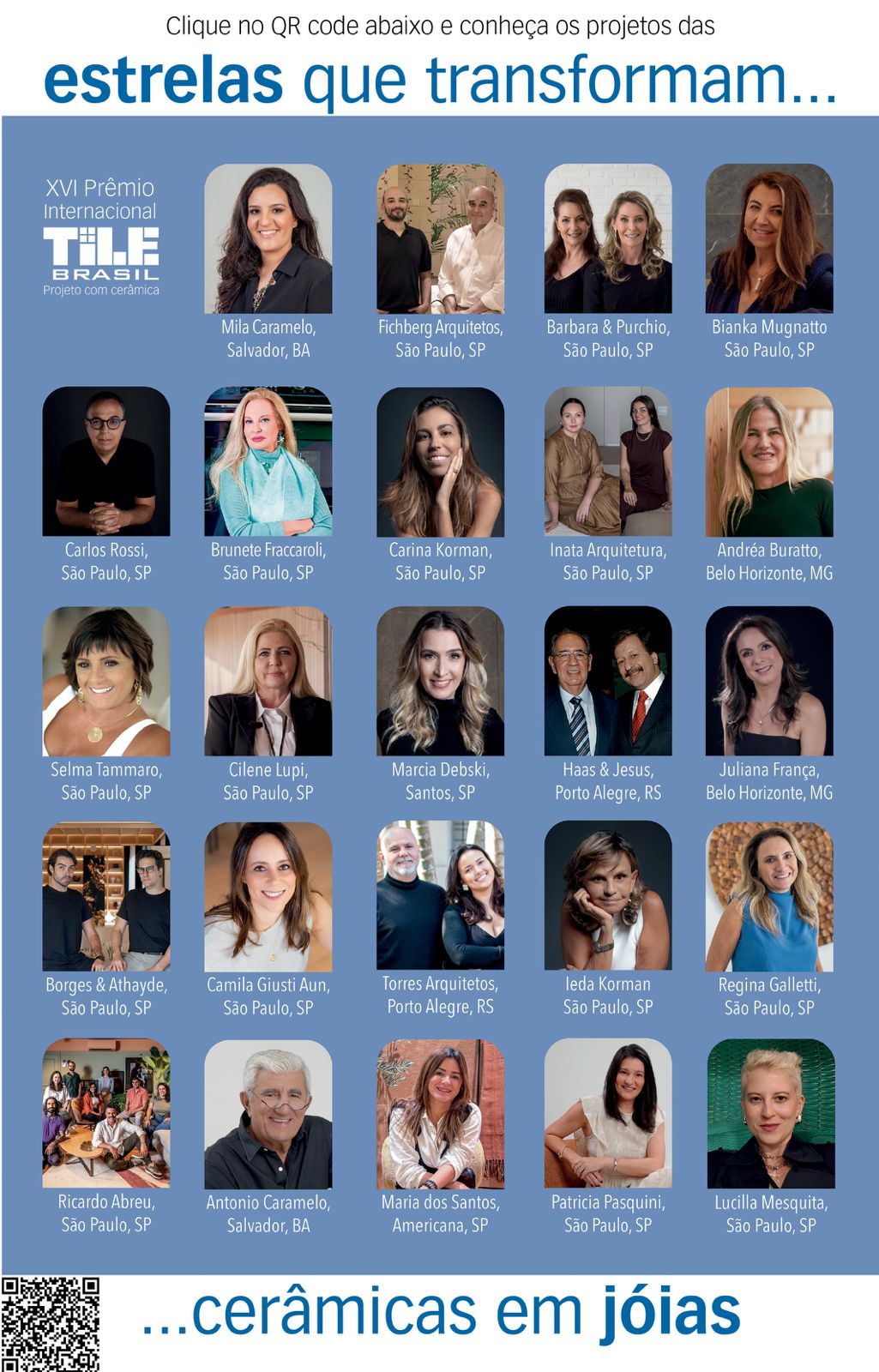 Os 24 projetos vencedores serão homenageados no dia 12 de março, no Auditório de Eventos do SP Expo, durante a Expo Revestir.