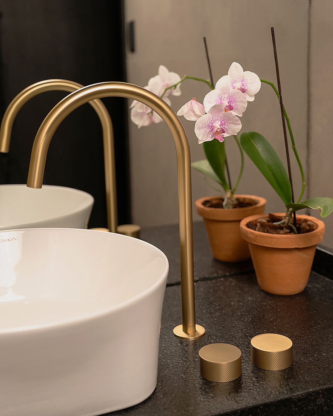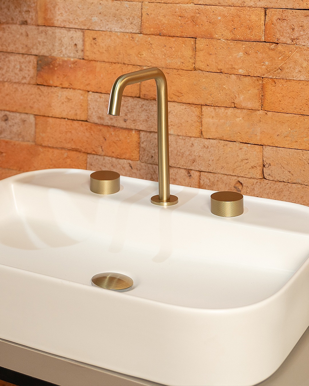 Entre os destaques da coleção está a Bica Domus, que traduz o conceito da linha ao unir suavidade visual e eficiência no uso. Seu desenho de linhas contínuas e formato arredondado resulta em uma estética leve e atemporal, capaz de dialogar tanto com ambientes minimalistas quanto com projetos contemporâneos mais expressivos. Além do apelo estético, o produto se destaca pela versatilidade de aplicação, podendo ser utilizado como torneira fria, misturador ou misturador monomix, ampliando as possibilidades de especificação em diferentes projetos.