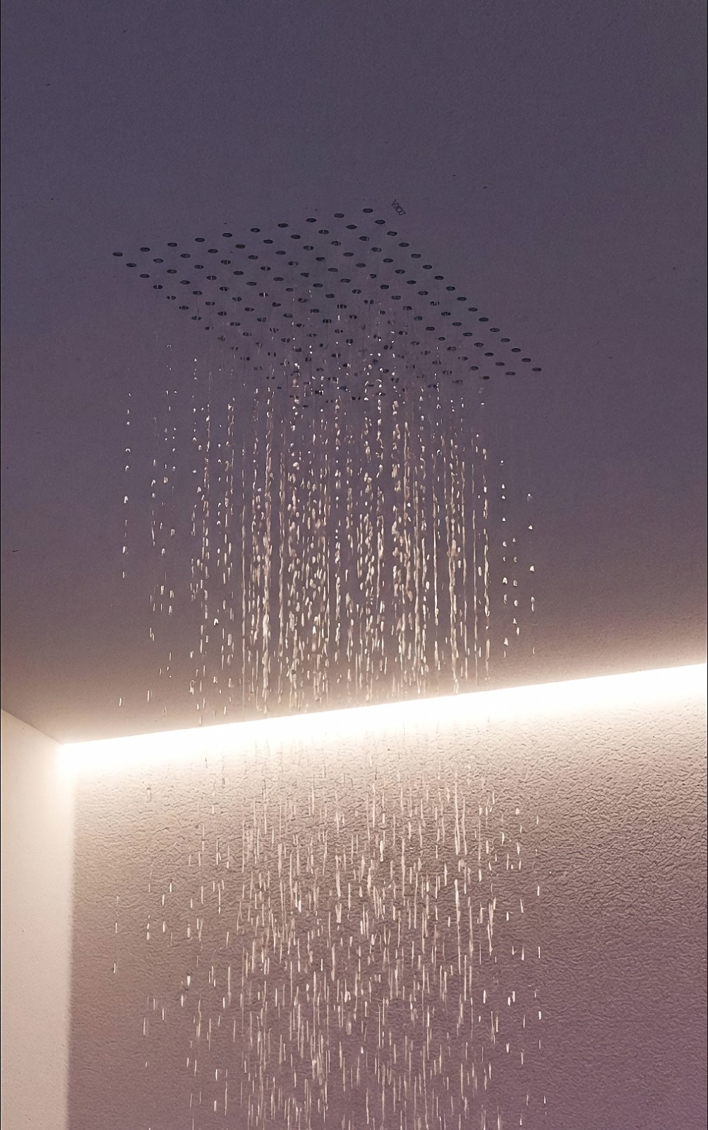Chuveiro Phantom: Um modelo de teto embutido com acabamento em DKast® que torna o produto quase invisível, permitindo que a água surja de forma contínua e silenciosa, como uma cascata particular.