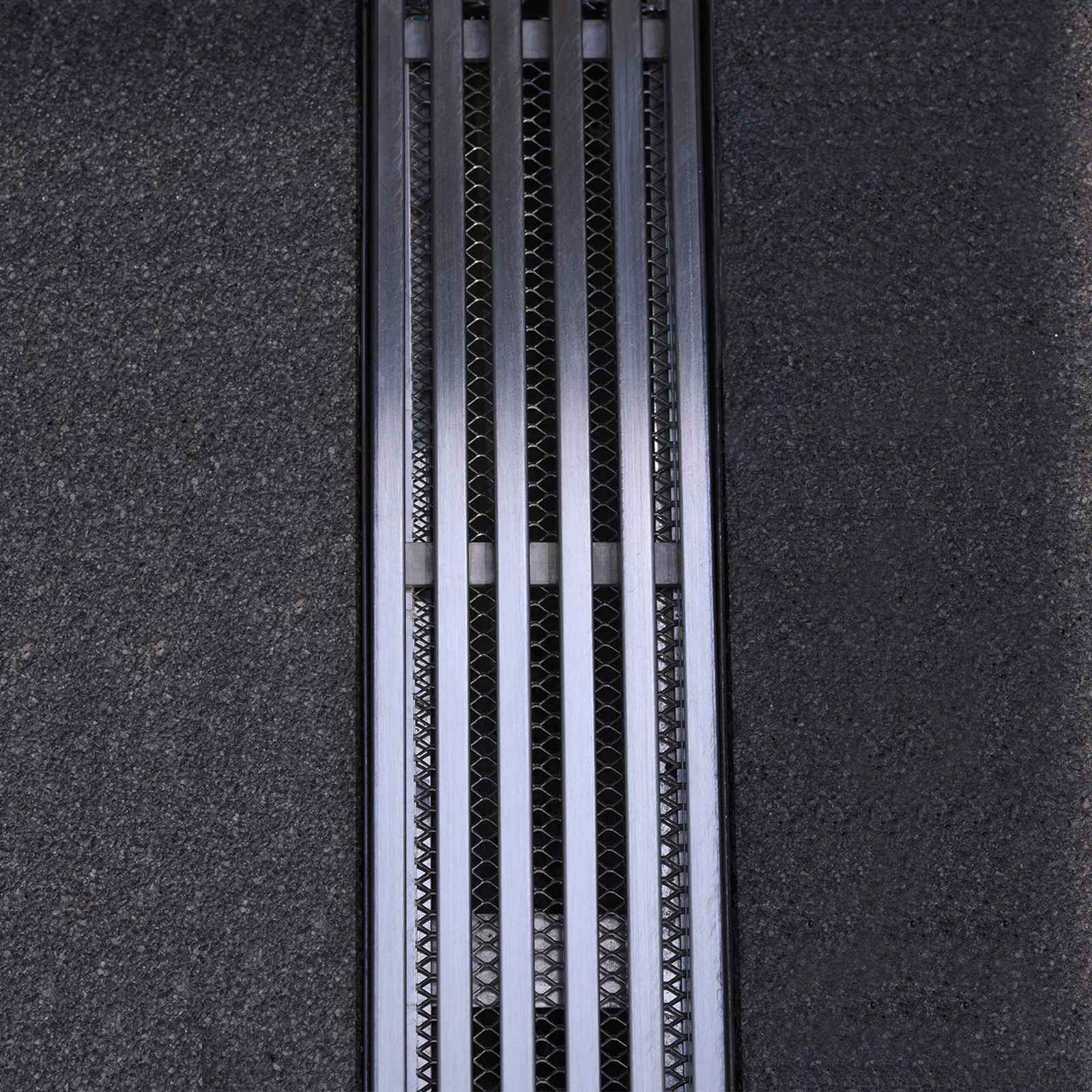 Projetada para suportar tráfego de veículos, a Grelha Externa Seis garante segurança estrutural, estabilidade dimensional e eficiência no escoamento da água, mesmo sob cargas elevadas e uso contínuo. Seu desenho com seis barras foi cuidadosamente desenvolvido para equilibrar desempenho hidráulico e leitura estética, integrando-se de forma harmônica aos projetos arquitetônicos sem comprometer a funcionalidade.