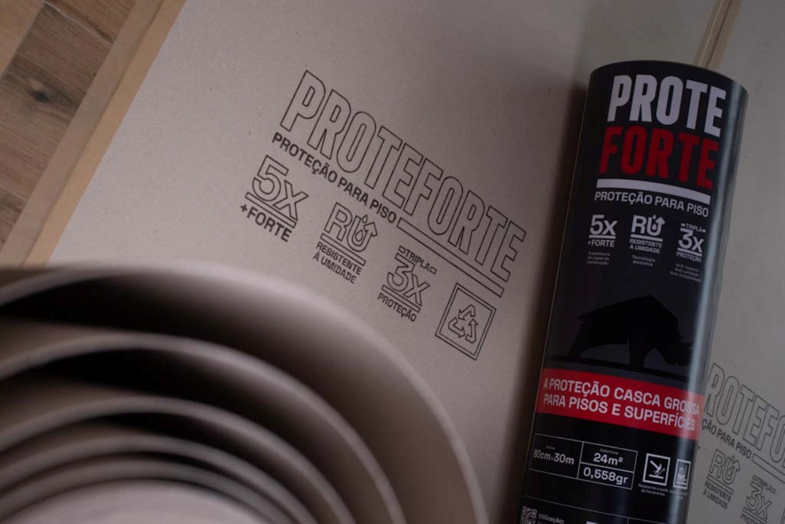 ● Material de Alta Resistência: Desenvolvida em sua composição com aparas de papel, a Proteforte oferece excepcional resistência a rasgos, perfurações e abrasão, suportando o tráfego intenso de operários, carrinhos de mão e equipamentos.