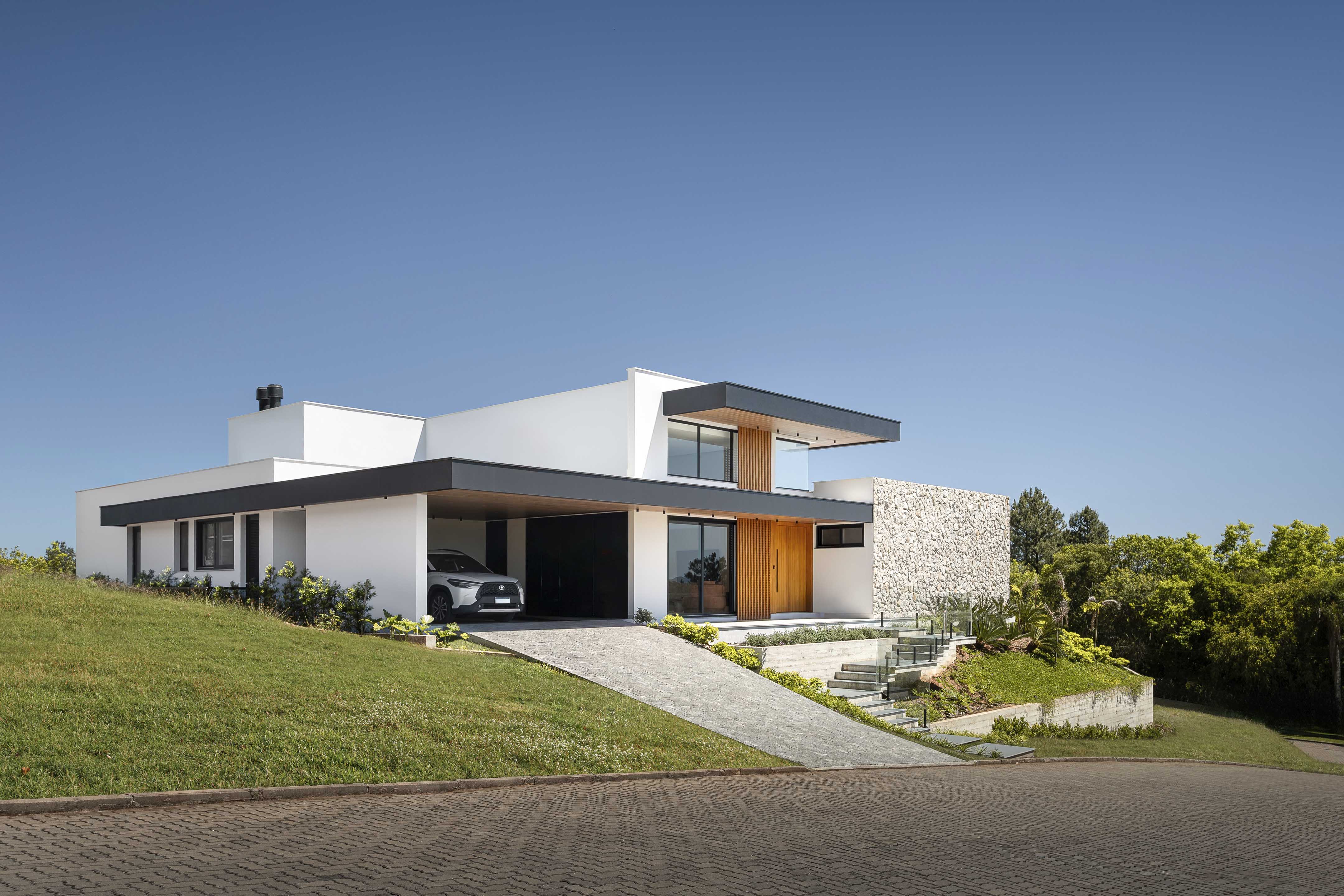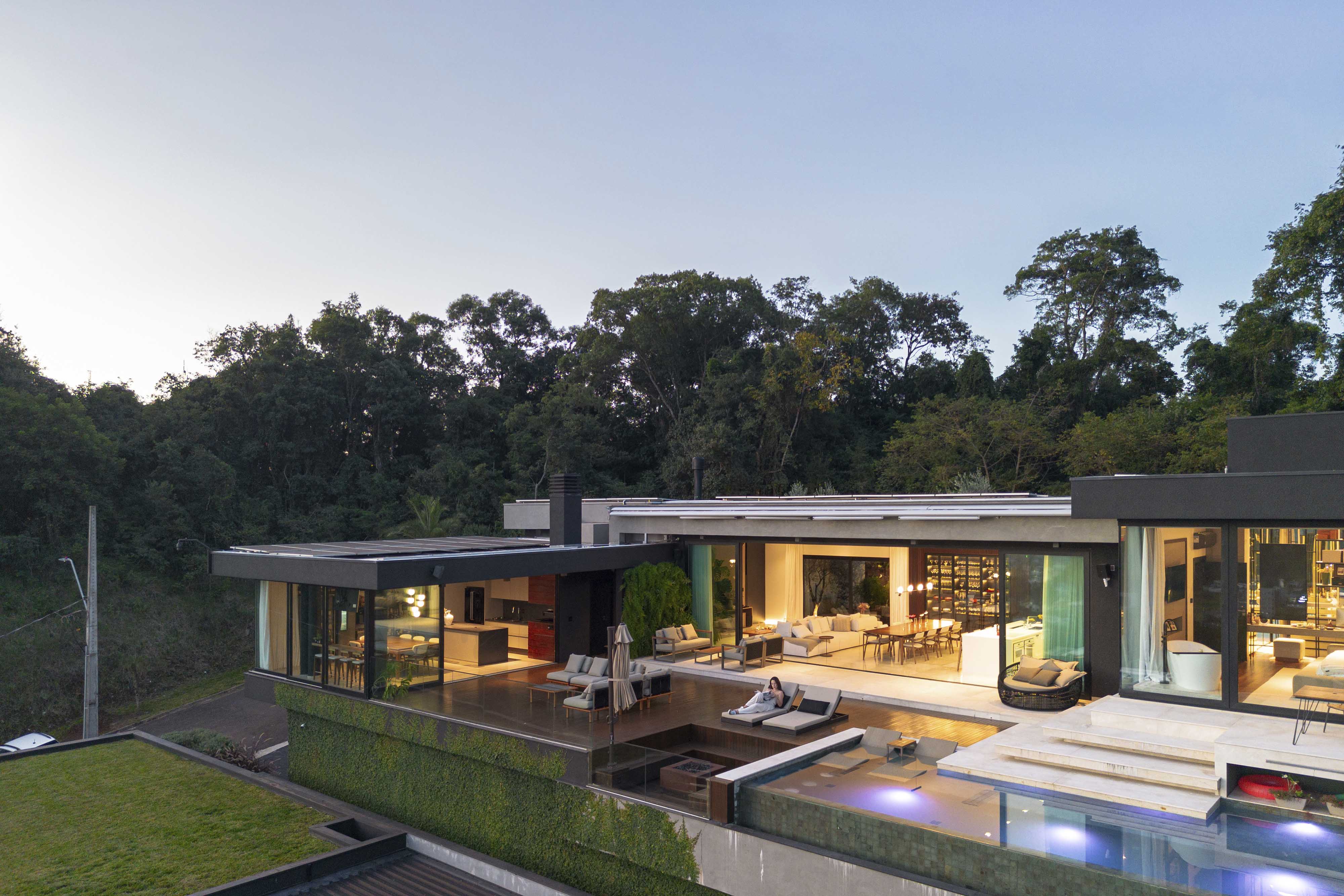 As esquadrias automatizadas Weiku são apresentadas em funcionamento dentro do ambiente, reforçando a ideia de escolha consciente aplicada ao projeto e demonstrando controle, precisão e integração à arquitetura, sem interferir na leitura formal dos espaços.